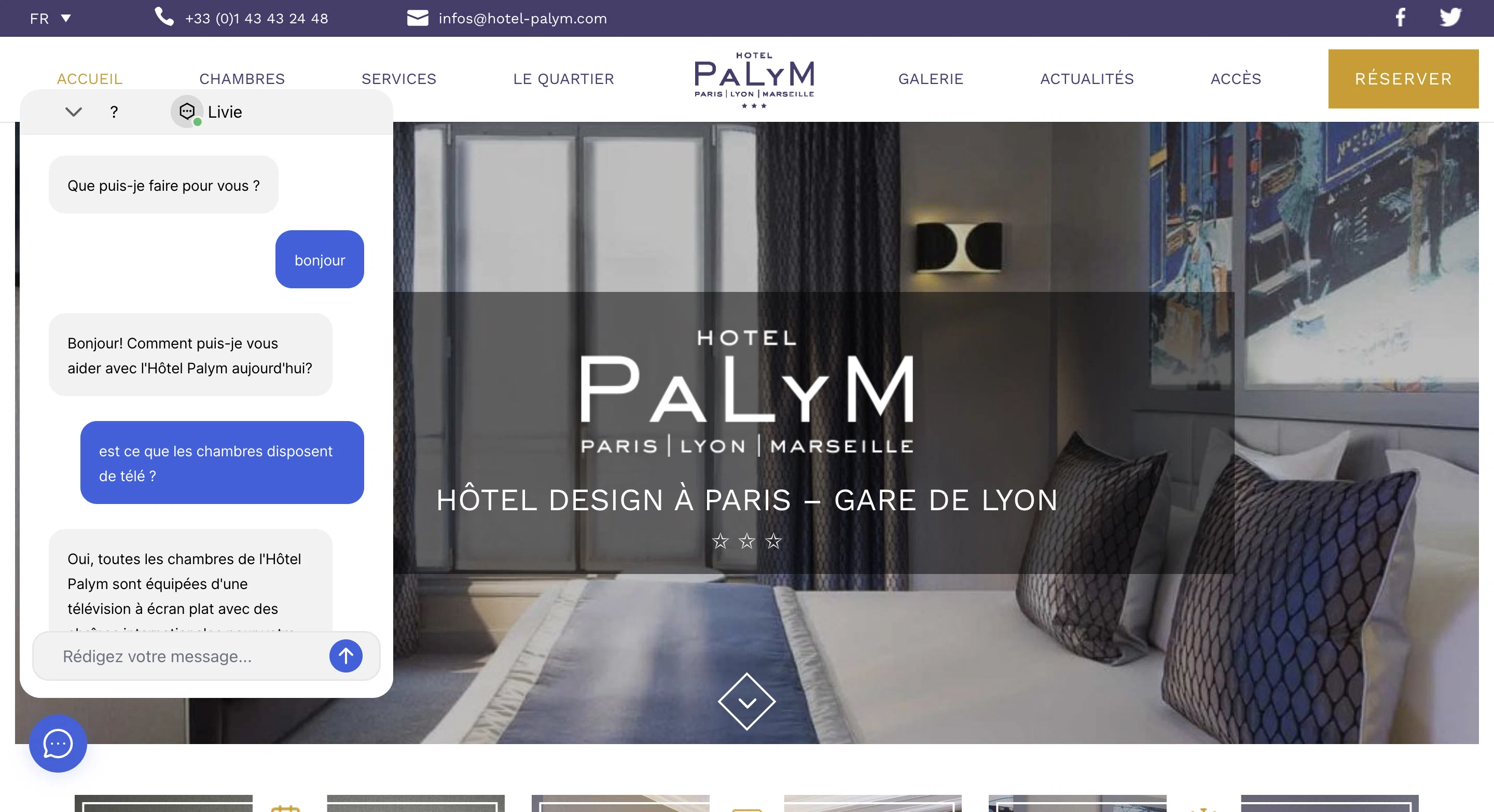 Dans une ère où l'innovation est la clé du succès, Altelis explore depuis plusieurs mois comment les avancées de l'IA (intelligence artificielle) comme ChatGPT peuvent être utilisées pour améliorer le quotidien des hôteliers. Aujourd'hui, nous sommes fiers de vous présenter Livie : notre nouveau chatbot hôtelier conçu pour transformer l'expérience client et simplifier la gestion opérationnelle de l'hôtel.